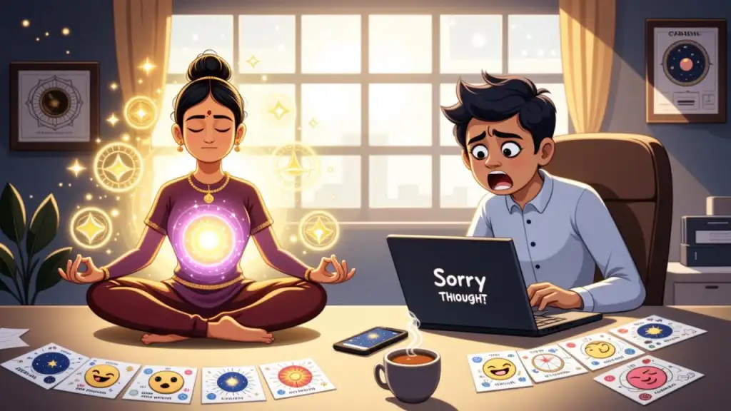 Why? Because whether you’re team skeptic or full-on zodiac stan, there’s something weirdly comforting about knowing the universe has a plan — even if that plan involves crying into your dosa because Saturn decided to throw shade at your love life.